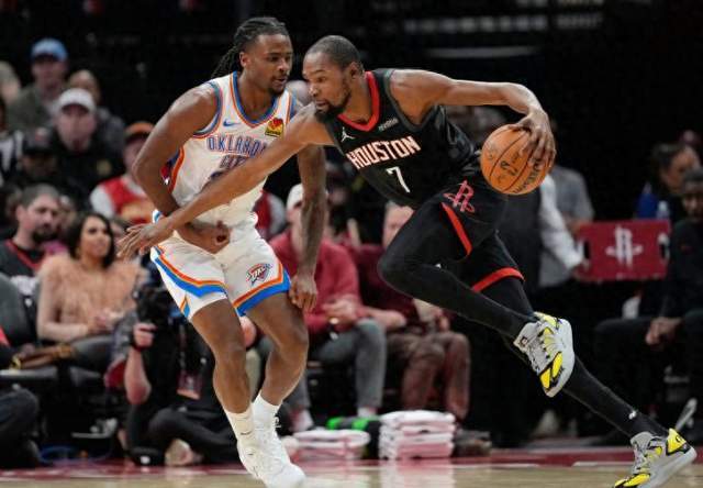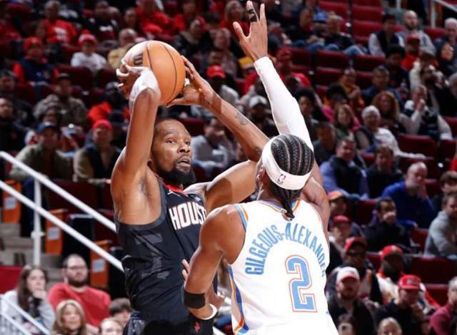 双方对于核心限制都是到位的,就是去赌谁的角色球员更猛。所以亚历山大今天打得一般般,杜兰特上来就是7中1命中率。可切特站了出来顶住内线,不过双方也一直是均势。首节雷霆领先2分,第二节申京和杜兰特找到感觉内外开火,火箭直接追平。但火箭刚对亚历山大放松一点,后者就连得5分,直接把分差拉开到7分。下半场火箭开始起势,特别是雨姐戴维森,一个快速三分和中投帮助火箭追到2分。