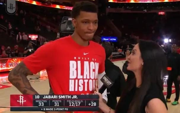 比赛最耀眼的明星无疑是史密斯,小贾出战33分钟,17投12中,三分球11投6中,罚球2罚1中,砍下31分9篮板3抢断3盖帽的全面数据。他的投篮效率极高,尤其是外线手感火热,6记三分让爵士的外线防守彻底崩溃。史密斯开局就手感爆棚,第一节就轰下14分,追平个人单节得分纪录,整场比赛几乎没有手软的时候。史密斯的爆发并非偶然。最近一段时间,他的状态明显回暖。特别是在杜兰特那次著名的“摔杯子”事件以及后续的一些争议言论后,史密斯似乎被彻底激发。