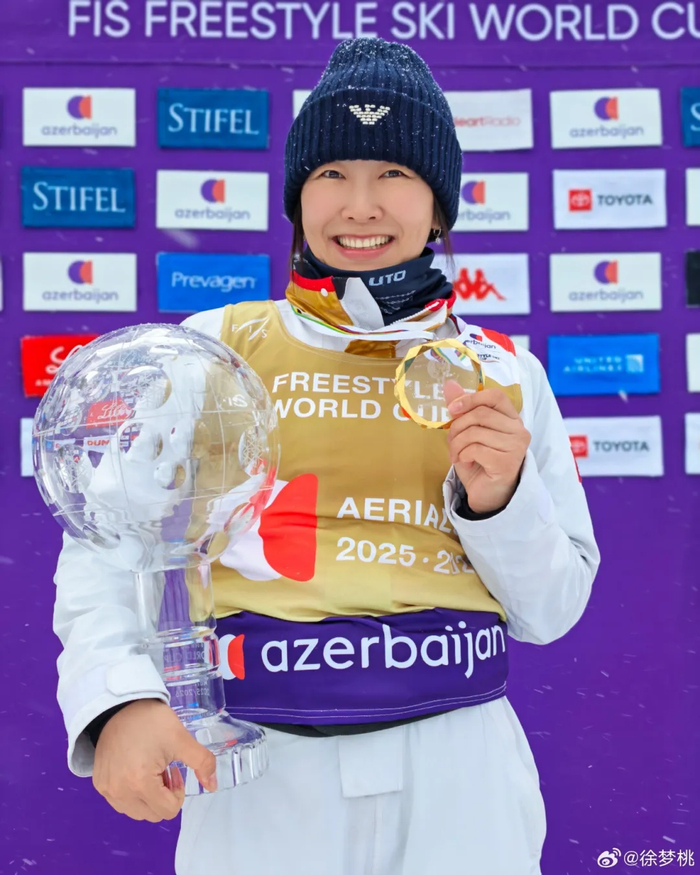 在2025—2026赛季国际雪联自由式滑雪空中技巧世界杯美国普莱西德湖站第二场比赛,徐梦桃继第一场比赛后再夺银牌,本赛季共获1金2银2铜,总积分420分遥遥领先其他选手,取得世界杯年度总冠军,捧起水晶球奖杯。